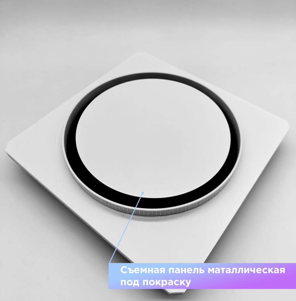 Так же диффузор состоит из металлической заслонкой, которой можно регулировать поток воздуха, либо полностью перекрыть его. К заслонке с помощью магнитов крепится декоративная круглая панелька, которую можно покрасить в цвет потолка. Так же по ободку диффузора имеется молярная сетка, для надёжной фиксации шпаклёвки. Наши диффузоры оснащены москитной сеточкой, которая препятствует попаданию насекомых в помещение.